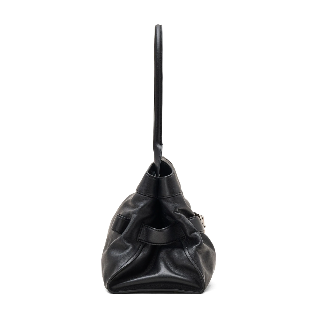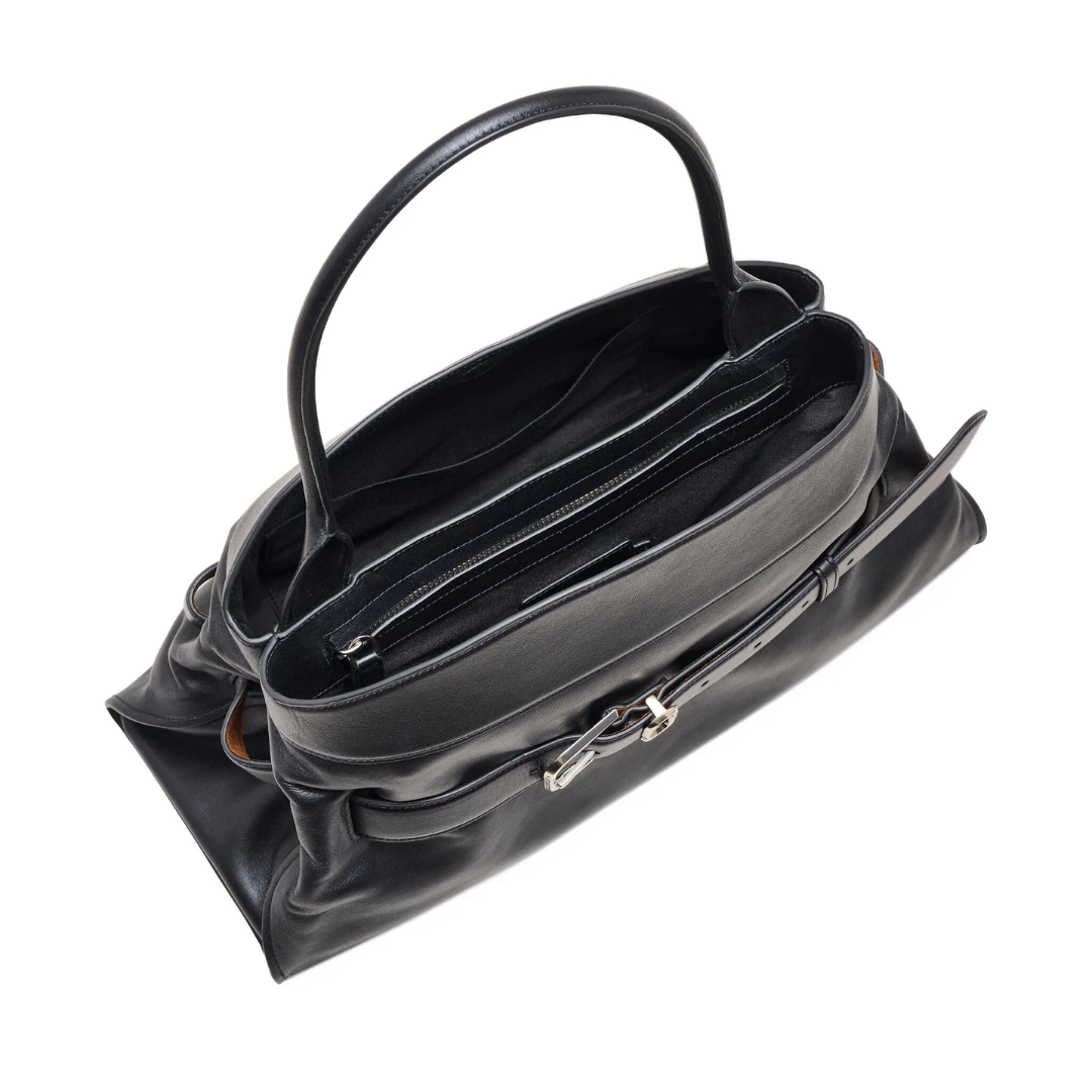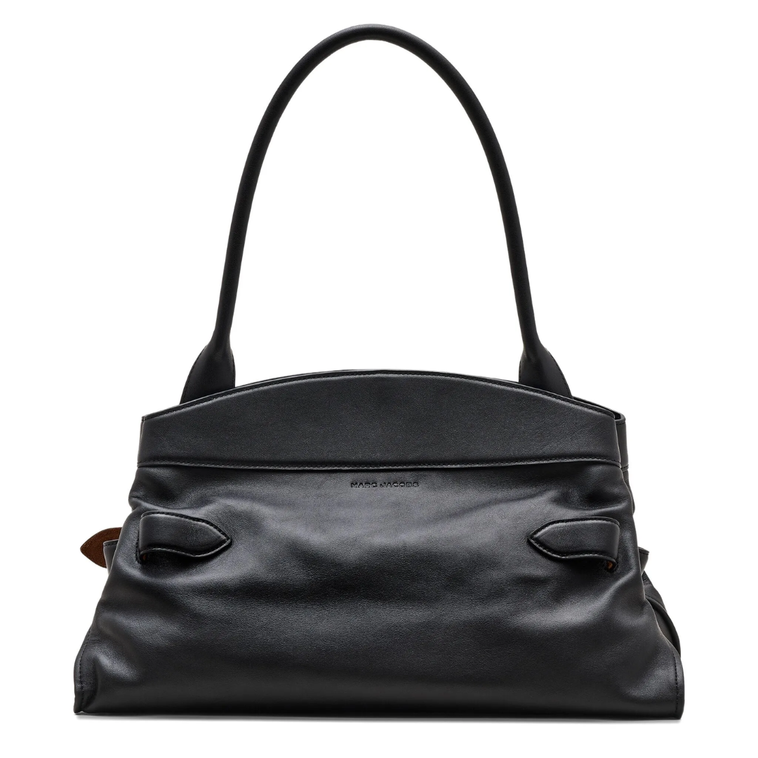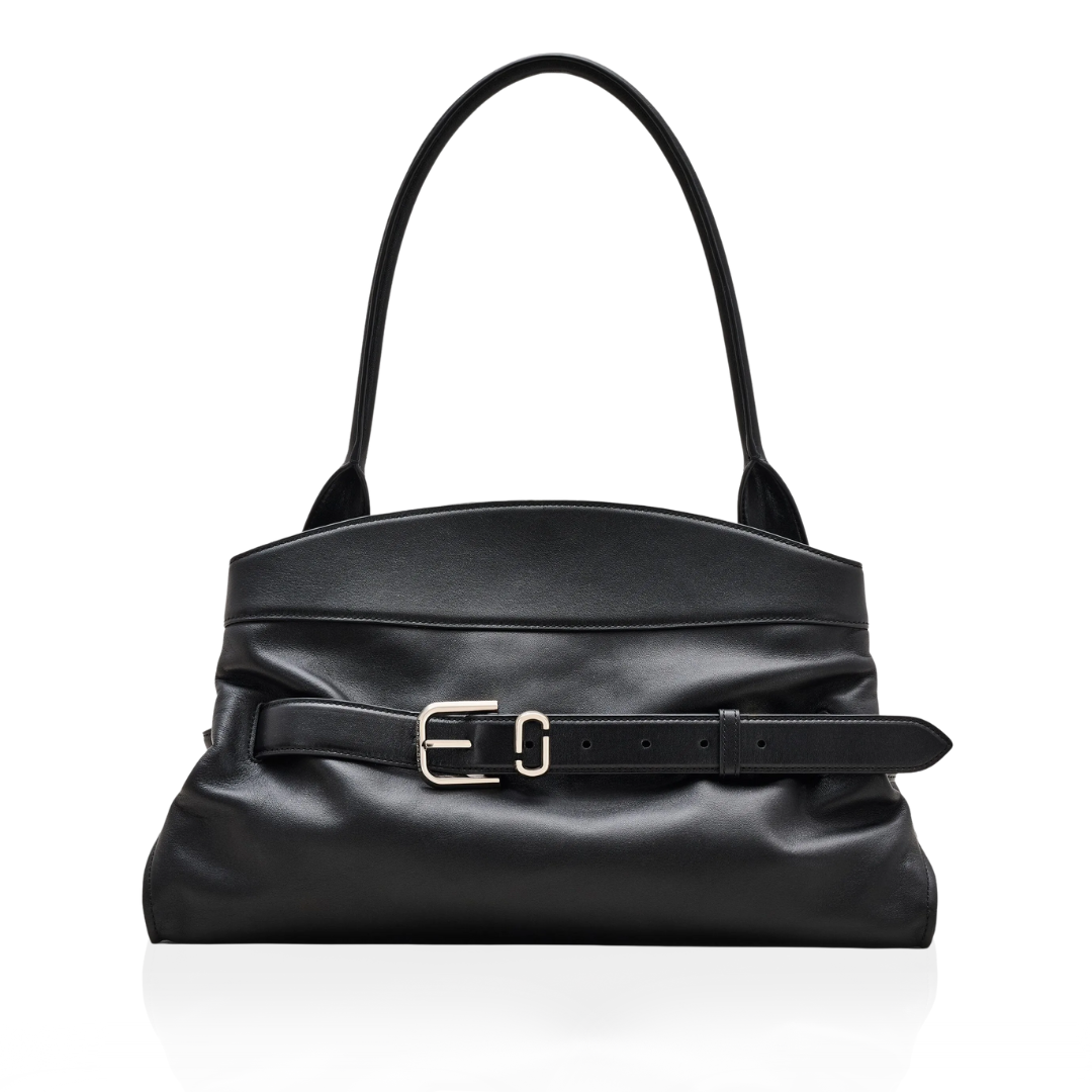 An effortlessly chic carryall, the Dakota Satchel merges utility with quiet sophistication. Crafted in smooth leather, it’s defined by a fixed J Marc logo belt - a nod to the Marc by Marc Jacobs archival belt collection. Thoughtfully designed, it features a magnetic closure, two interior compartments and pockets that speak to everyday practicality. Metal feet ground the design, while it’s shoulder strap adds a sculptural finish.